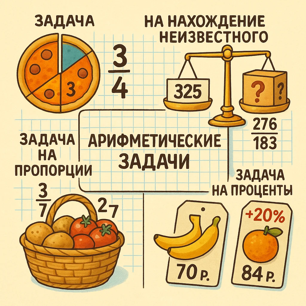 В начальной школе ученики сталкиваются с различными типами арифметических задач, которые развивают математическое мышление и навыки вычислений. Рассмотрим основные типы задач и методы их решения.