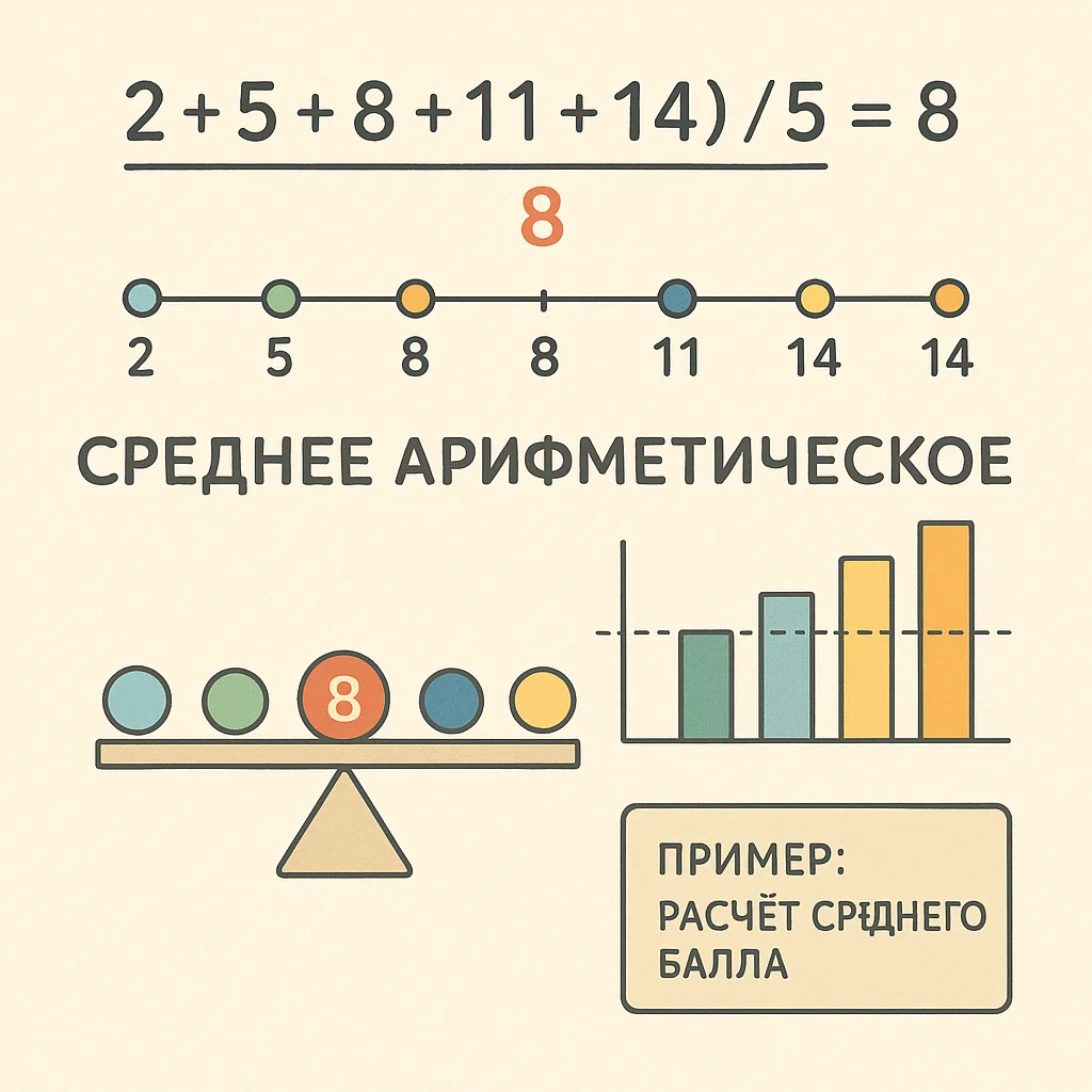 Среднее арифметическое — это сумма всех чисел набора, деленная на количество этих чисел. Это одна из основных статистических характеристик, позволяющая оценить центральную тенденцию данных.