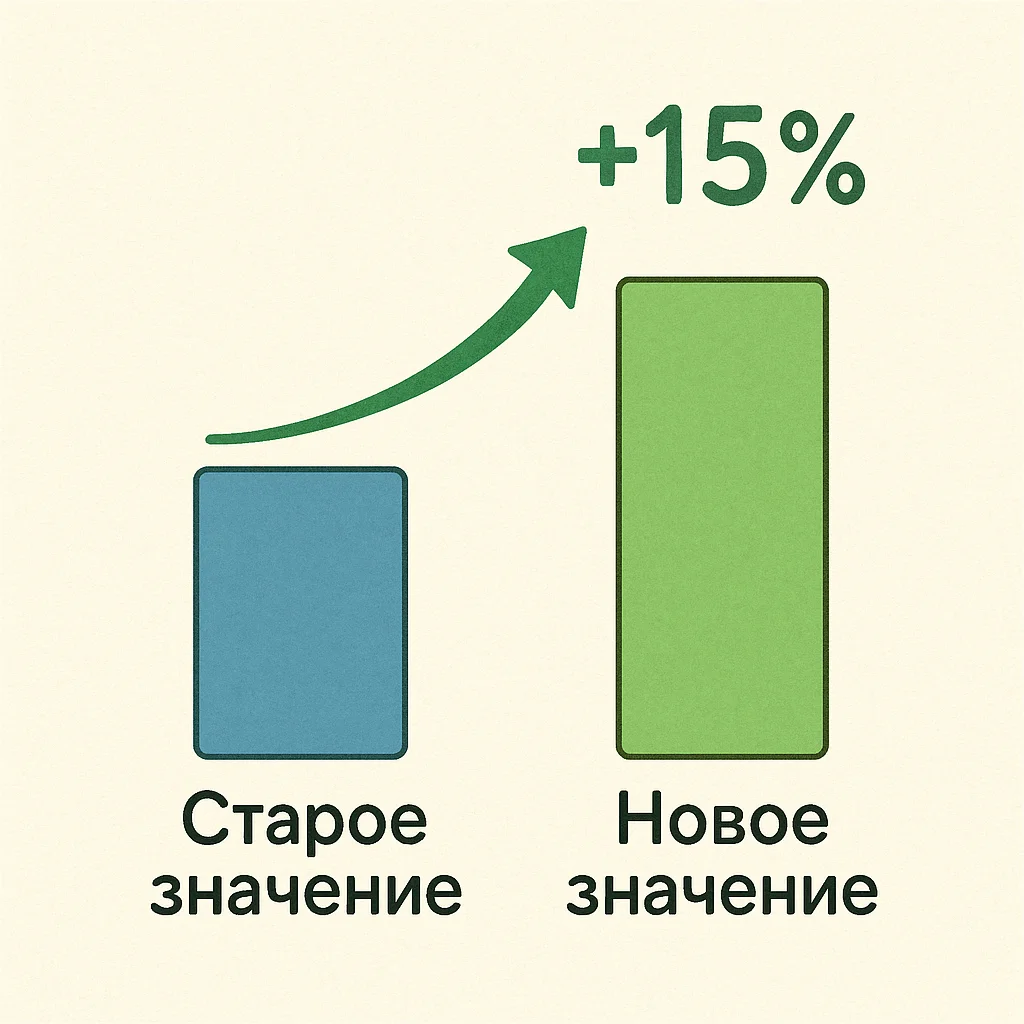 $\text{Процентное изменение} = \frac{\Delta}{\text{Старое значение}} \times 100\%$